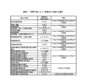 - 青切符の導入: 113種類の違反行為が対象。これまで厳重注意(赤切符)で済んでいた比較的軽い違反も、反則金(青切符)の対象に。