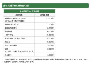 - 主な反則金額: